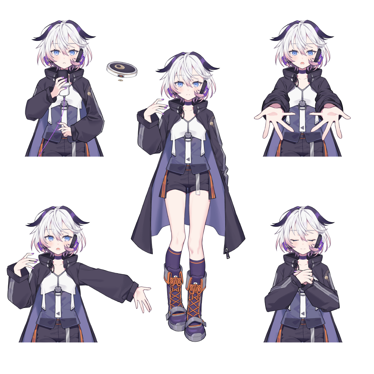 今回は通常のイラストとは異なり、表情や腕、パーツなどを色々組み替えられる、いわゆる「立ち絵」の形式で描いていただきました。